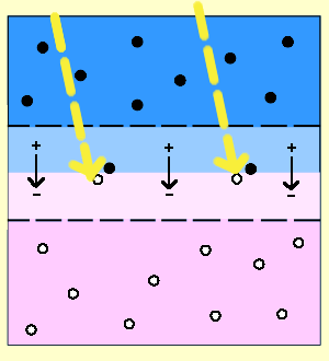 2. In der Verarmungszone erzeugt das Licht ein Elektron-Loch-Paar.