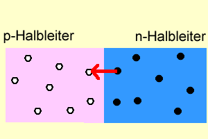 Grenzfläche Elektronen aus dem n-Teil in den p-Teil des